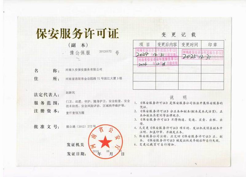 保安服务许可证